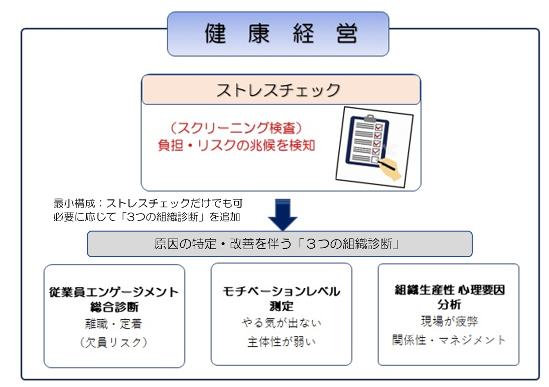 健康経営×ストレスチェック(SC)+従業員満足度(ES)×3つの組織診断