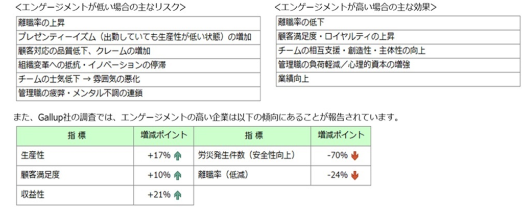 このように、エンゲージメントは「組織の“見えない推進力”」とも言えます。