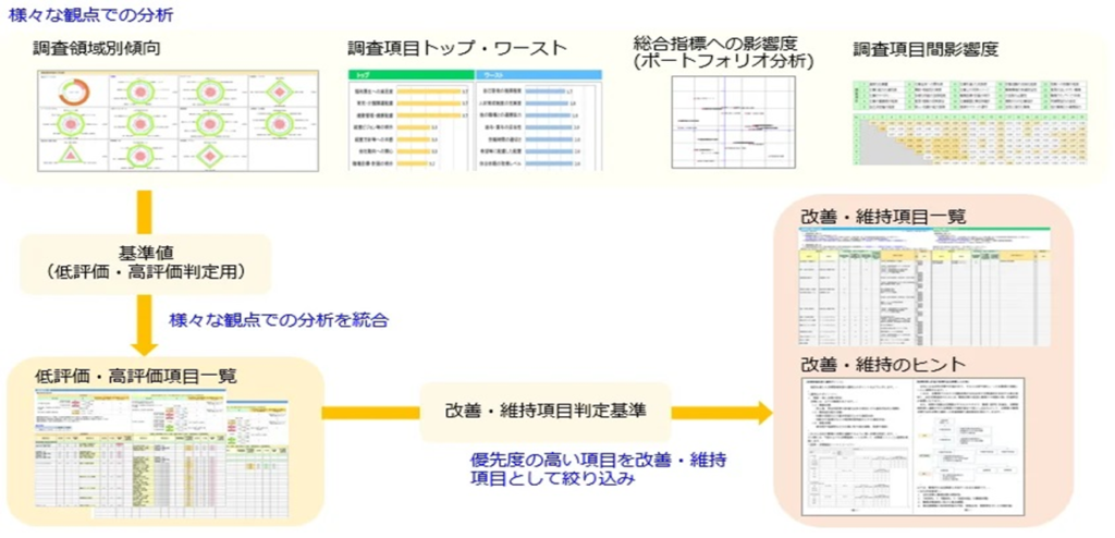 様々な観点での分析結果を統合し、改善・維持項目を特定