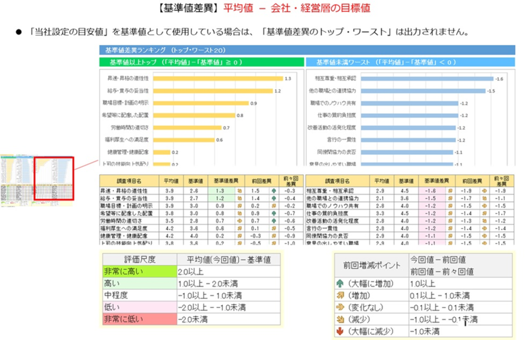 (「会社・経営層の目標値」を未使用の場合は、下表中「基準値差異」が「平均値」となります。)