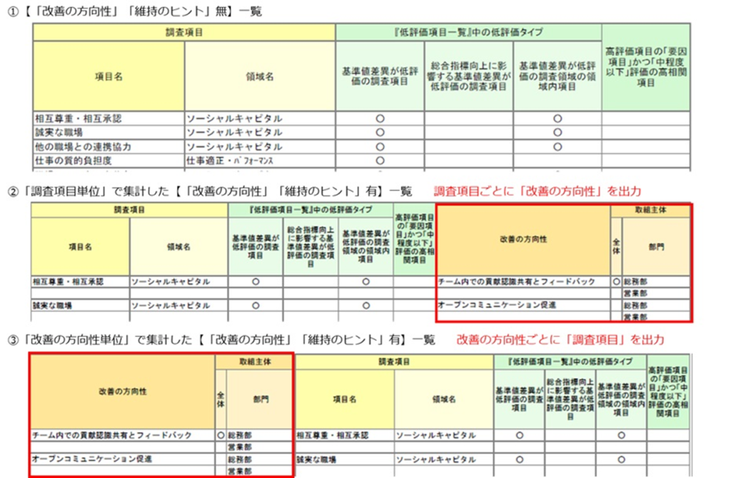【エンゲージメント総合診断】改善・維持一覧