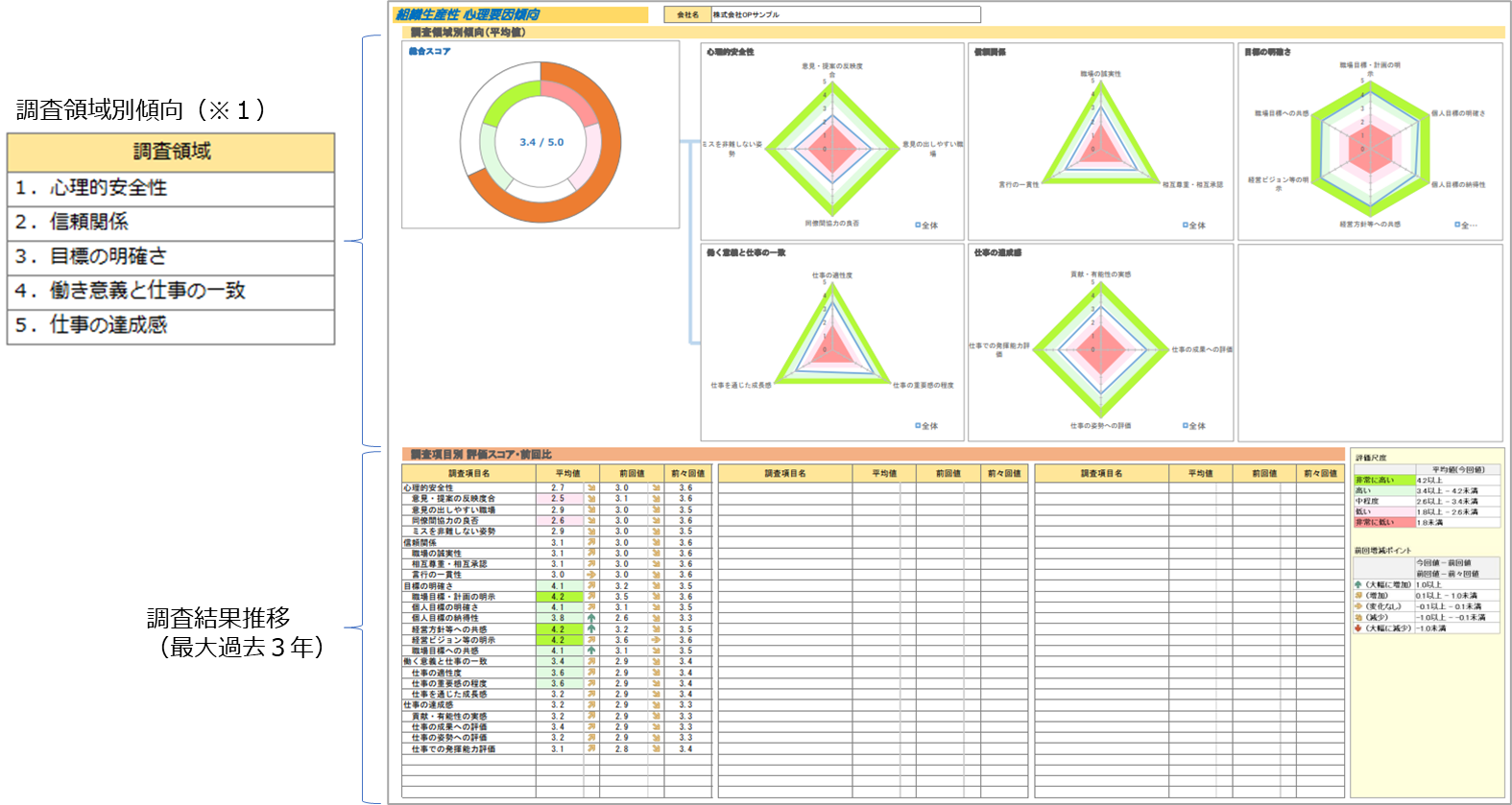 【組織生産性 心理要因分析】調査領域別傾向・調査結果推移